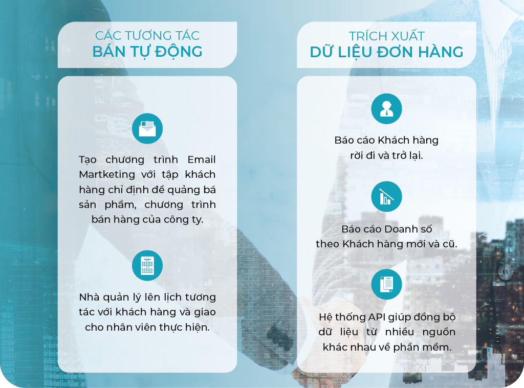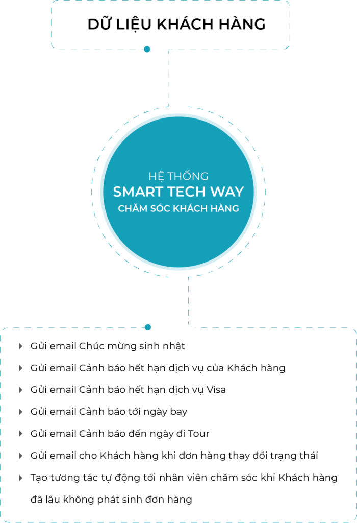Tính năng CRM của SMART TECH WAY giúp Doanh nghiệp tương tác với Khách hàng một cách tự động và bán tự động.