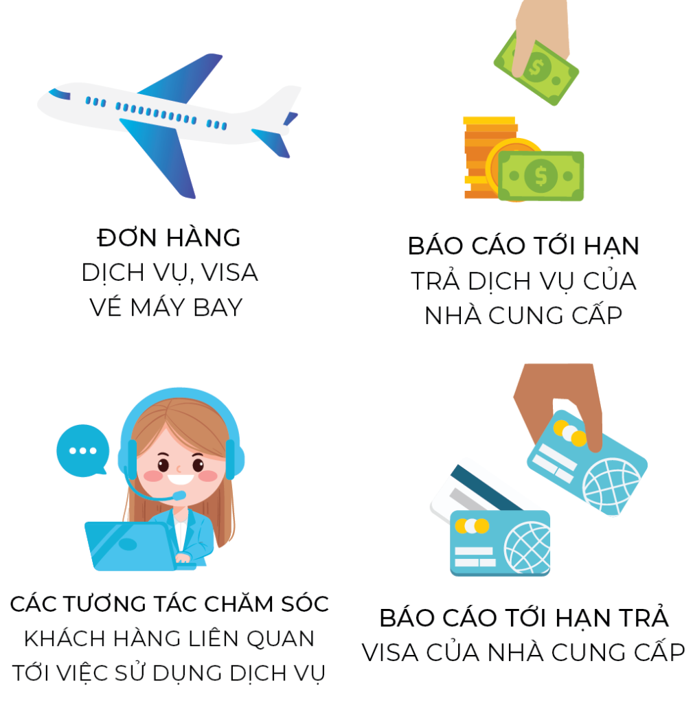 - Báo cáo khách hàng hết hạn Visa.